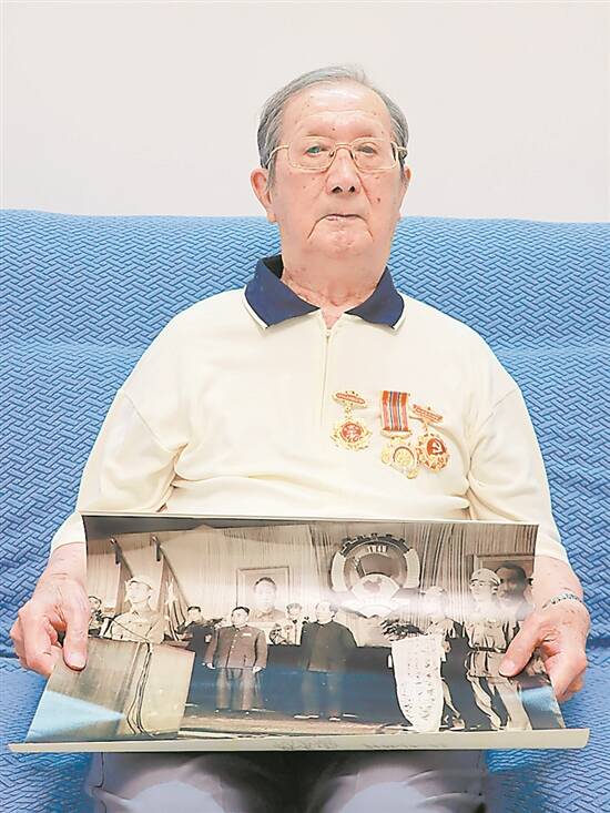 日前,羊城晚报记者随广东省政协文化和文史资料委员会的同志,专程前去探访。为了迎接我们的到来,老人特意佩戴上三枚珍贵的勋章——“庆祝中华人民共和国成立70周年”纪念章、“中国人民志愿军抗美援朝出国作战70周年”纪念章、“光荣在党50年”纪念章。当世能同时拥有这样三枚纪念章的人,极为罕有。
