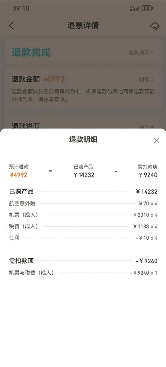 “买好机票发现选错了时间,马上申请退票就被扣了这么多钱。”11月28日,珠海市民周先生向羊城晚报记者讲述自己本月初购买机票的遭遇时如是说。周先生表示,他花14232元在“去哪儿旅行”App平台上购买国际机票,发现选错时间后,马上申请退票,最终被扣款9240元,仅退回4992元。