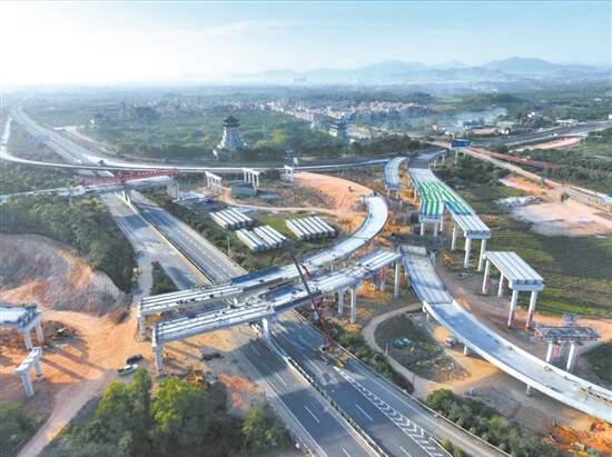 羊城晚报讯 记者赵映光,通讯员郝君妮、谢育坚、洪楚炯摄影报道:11月28日,随着最后一片小箱梁精准落位,揭普惠高速公路南延线东港互通跨沈海高速主线梁板吊装任务顺利完成,这标志着该项目的建设取得了重大的阶段性进展。