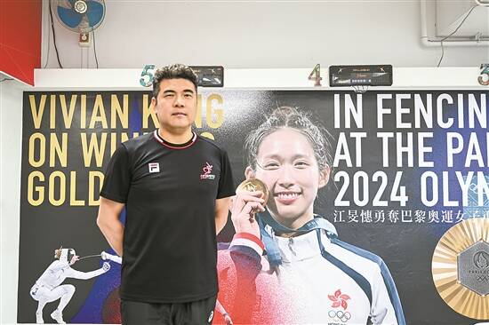 “脚步快一点!”“手伸直!”“出剑要果断!”位于香港沙田火炭地铁站旁的一座击剑馆里,练剑的少年和教练执剑对立,两把剑击打在一起时发出的铿锵声和教练的指导声交织在一起,让人仿佛置身于真实的赛场。在少年和教练身后,是一张江旻憓在巴黎奥运会夺冠后登上领奖台的海报,海报里的她手持奥运金牌,笑靥如花。