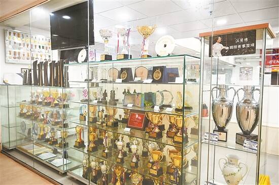 击剑馆内陈列着江旻憓青少年时夺得的荣誉