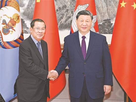 习近平指出,当前,国际形势变乱交织,全球性挑战层出不穷,考验着各国的应对和选择。中柬两国都致力于做世界的和平力量、发展力量、进步力量。中方将继续支持柬埔寨在国际和地区事务中发挥更大作用,壮大“全球南方”力量,支持东盟坚持战略自主,维护中心地位,坚决反对外部势力将冷战思维引入本地区,坚定不移推动东盟一体化和共同体建设。中方愿同柬方坚定道不改、志不变的决心,增强底线思维,加强协作和配合,共同应对各种风险。