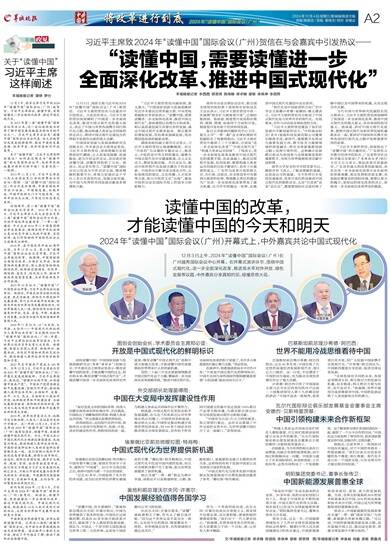 12月3日上午,2024年“读懂中国”国际会议(广州)在广州越秀国际会议中心开幕。在开幕式演讲环节,围绕中国式现代化、进一步全面深化改革、推进高水平对外开放、绿色发展等议题,中外嘉宾分享真知灼见,碰撞思想火花。