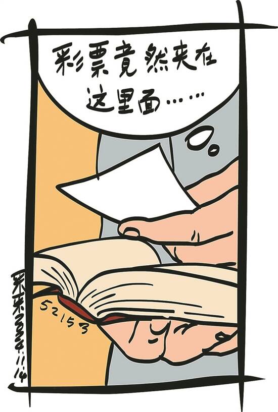 回家后,老牛无聊,把床底下的书拿出来。老牛喜欢看书,可是,从彩票丢了后,一直也没心情看。今天把书拿出来,一翻,惊讶地发现彩票竟然夹在里面!老牛顾不得告诉媳妇,急忙拿出草稿纸对比,却发现自己那天提前写好了号码,但在彩票站时,一时糊涂,买了别的号码。