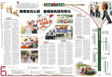 聚焦发挥退役军人优势作用,高质量用好军休人力人才资源。近年来,广东挖掘整理军休干部“口述历史”,编印书籍《光辉岁月》《历史的光芒》1.2万册,组织制作6集访谈纪录片。坚持以深入开展新时代“银龄行动”为统领,通过“兵支书”“社区政委”“老班长”等载体,参与社会道德建设、基层治理、青少年国防教育、文艺拥军等,全省组建红星“三团”等20支军休志愿服务队,深入到机关、学校、军营、社区、企业等,广泛开展志愿服务活动。军休志愿服务品牌被遴选入围全省老干部工作品牌创建100个范例。