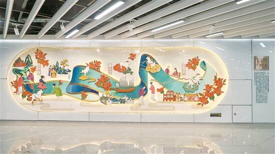 地铁十一号线的芳村站,非遗主题为“粤绣锦华” 羊城晚报记者 刘畅 摄