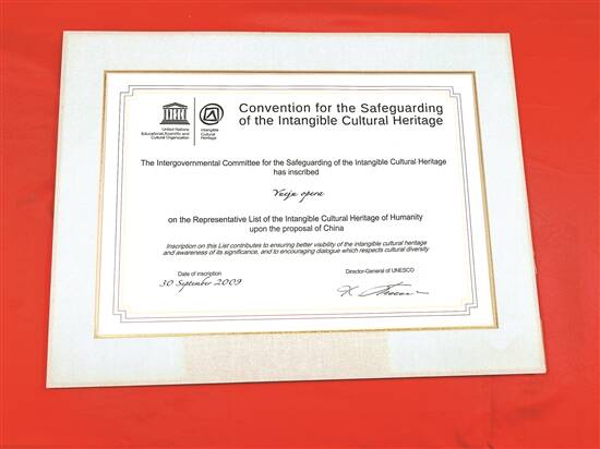 联合国教科文组织“非遗”证书 广东省艺术研究所供图