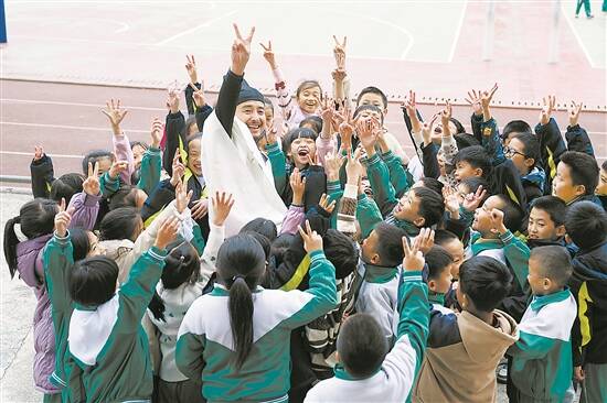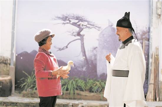 进了翁城,无论你走到哪里,都有“李白”的身影,都会无意间遇见“李白”。他穿着一身专门为“李白”量身定制的白色套装,留着一缕胡子,手中拿着一本《翁城孩子的诗》,为翁城人读诗。谁家的孩子喜欢写诗,他都能说出孩子的名字,都能念出孩子写的诗句。