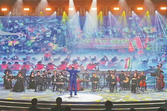 气势磅礴的大合奏《赛龙夺锦》 羊城晚报记者 曾育文 摄