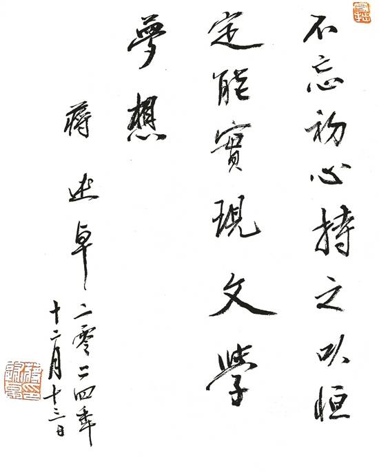 学人寄语 不忘初心持之以恒,定能实现文学梦想