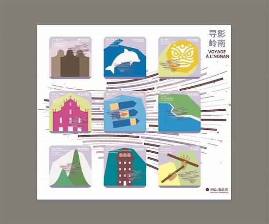 山海展映季·巴黎活动期间,山海计划为法国观众带来一套限定周边,其中“寻影岭南”冰箱贴套装设计提取了9部短片9个取景地的特色地标和文化符号,包括广州花都塱头古村、湛江中华白海豚、佛山南狮、澳门大三巴牌坊、揭阳神泉港、深圳大梅沙盐田港、清远英西峰林、江门碉楼、汕头英歌舞等,创意展示气象万千的岭南风光。