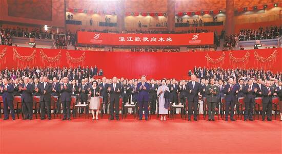 新华社电 镜海扬帆风正劲,濠江欢歌向未来。庆祝澳门回归祖国25周年文艺晚会19日晚在澳门东亚运动会体育馆举行。中共中央总书记、国家主席、中央军委主席习近平观看了演出。