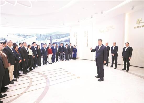 习近平同参与横琴粤澳深度合作区规划、建设、管理、服务等各方面代表亲切交流。他表示,“澳门+横琴”正在成为丰富“一国两制”实践的新示范、推动粤港澳大湾区建设的新高地、实现国家高水平对外开放的新平台。你们是横琴建设的先行者、实干家,为国家和澳门发展作出了贡献。