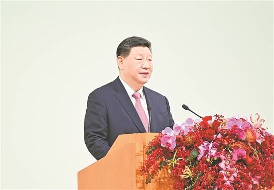 习近平指出,今年是中华人民共和国成立75周年,中国共产党二十届三中全会对进一步全面深化改革、推进中国式现代化作出系统部署,强国建设已经展开壮美画卷并呈现出无比光明的前景,中华民族正以不可阻挡的步伐迈向伟大复兴。只要全面准确、坚定不移贯彻“一国两制”方针,有特别行政区政府和社会各界共同努力,有伟大祖国作坚强后盾,澳门一定能打开发展新天地、不断创造新辉煌,一定能为以中国式现代化全面推进强国建设、民族复兴伟业作出更大贡献。