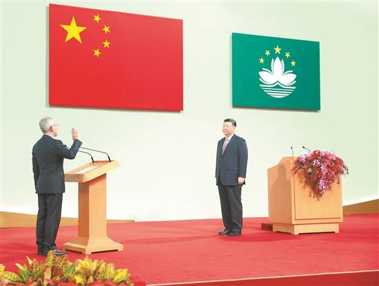 新华社电 庆祝澳门回归祖国25周年大会暨澳门特别行政区第六届政府就职典礼20日上午在澳门东亚运动会体育馆隆重举行。中共中央总书记、国家主席、中央军委主席习近平出席并发表重要讲话。他指出,澳门回归祖国25年来,具有澳门特色的“一国两制”实践取得巨大成功,澳门发生翻天覆地的变化,国际影响力大幅提升。他希望,新一届澳门特别行政区政府团结带领社会各界,抢抓机遇、锐意改革、担当作为,更好发挥“一国两制”制度优势,不断开创“一国两制”事业高质量发展新局面。