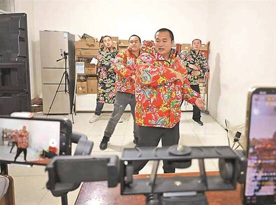 济南的冬天,晚上7时天已经黑透。李章兵给在医院的妻儿送完晚饭,回到出租屋,其余四位爸爸已在“直播房”等着他了。这是一间十几平方米的空房,站着五个男人,加上直播设备和桌椅杂物,更显局促。来不及休息,李章兵和爸爸们开启了直播,“动次打次”的舞曲响起,他们穿上东北大花袄,笨拙地扭动身体,以博观众一笑。
