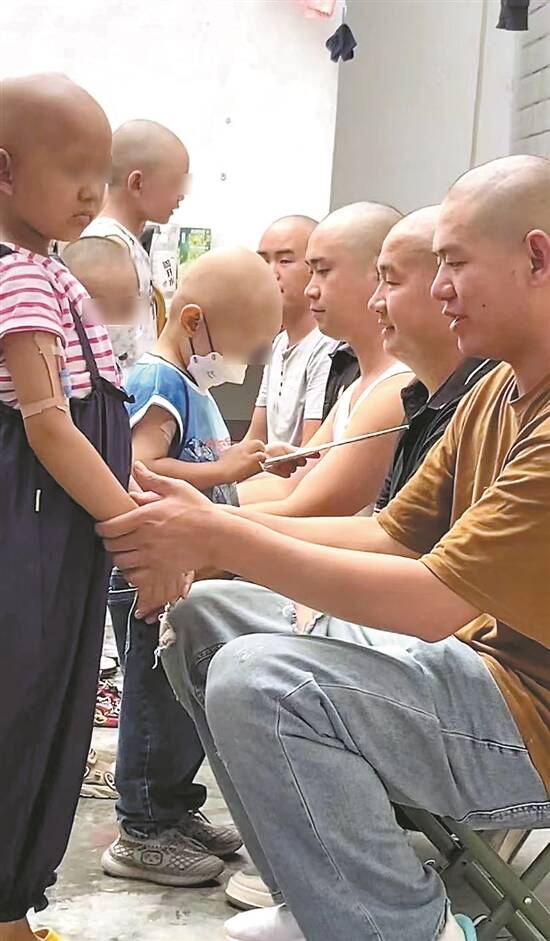 爸爸们陪着孩子剃了光头