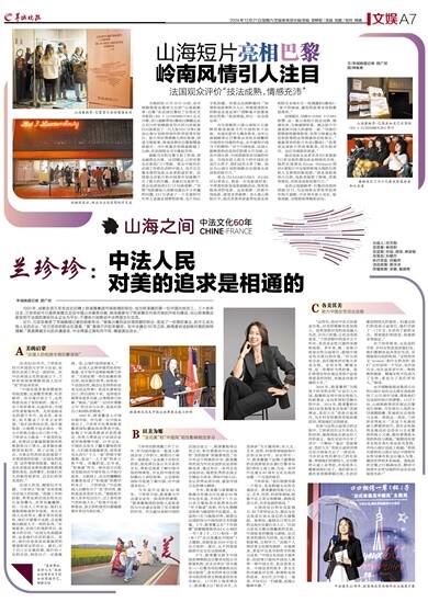 近日,兰珍珍接受了羊城晚报记者的独家专访。“很高兴看到这份我热爱的职业,变成了一份美的事业,如今又成为我人生的志业。”在兰珍珍的职业生涯里,“美”是绕不开的关键词。在中法建交60年之际,她再度讲述起她对美的独特理解:“美是跨越文化的共通语言,中法两国之美和而不同,情谊源远流长。”