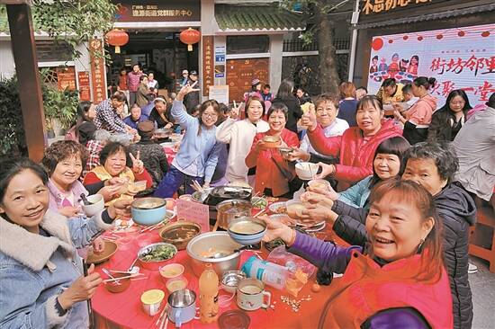 活动邀请了辖区居民代表、志愿者、一线环卫工人、一线医护人员、教师代表参与,70围宴席沿着何家祠道摆放,桌上琳琅满目的美食让人目不暇接,从家常小炒到精致点心,从传统风味到创意佳肴……每一道菜都饱含着街坊们的巧意和心思,街坊以美食热情地招呼着往来宾客。