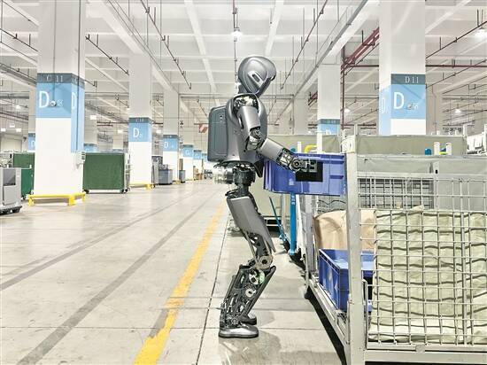 广东智造企业的人形机器人在汽车生产线接受搬运实训 资料图