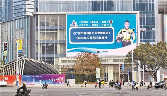 商圈大屏播放《广州市电动自行车管理规定》宣传内容 通讯员供图