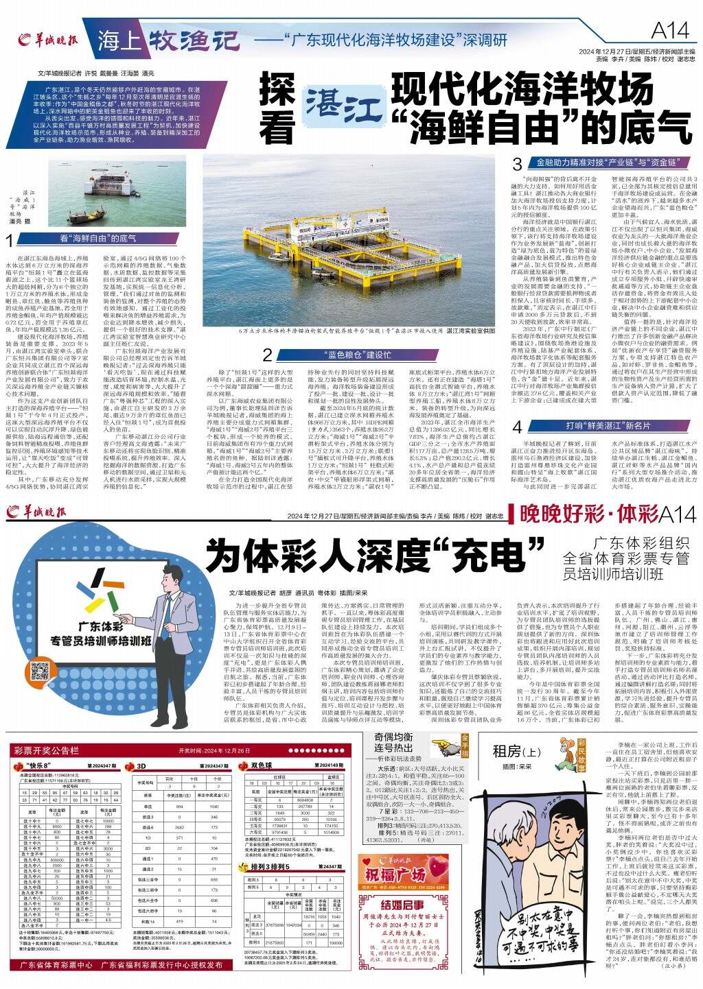 第A14版:海上牧渔记 ——“广东现代化海洋牧场建设”深调研;晚晚好彩·体彩;广告