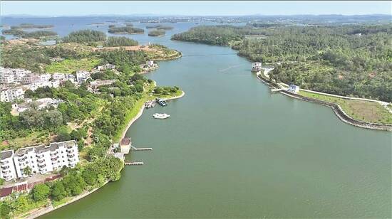 鹤地水库的蓝绿交织美景,已然深度融入附近居民生活。湛江市雷州青年运河管理局副局长王林五告诉记者,当地持续开展水环境整治,清漂清淤双管齐下,打造水清景美的环境。通过管网收集生活污水,并建立197座生活污水处理池,库区生活用水得以达标排放。