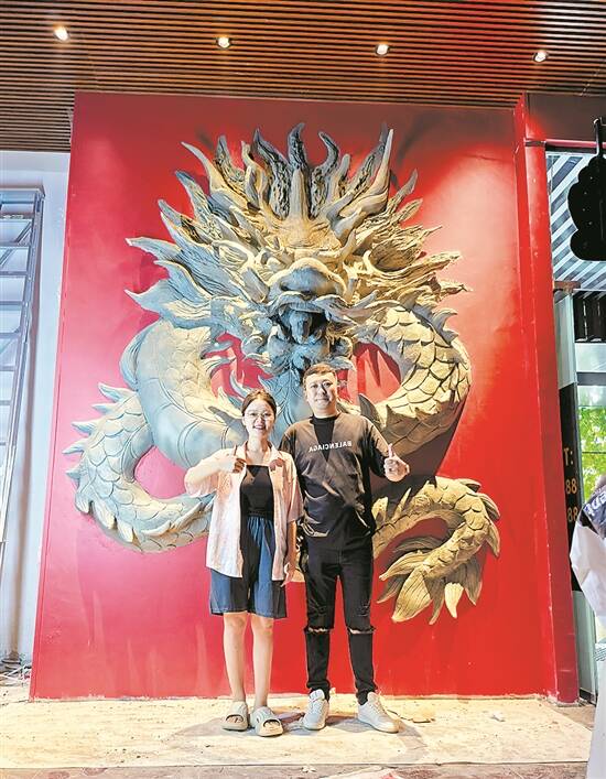 近期,在记者的回访中,裴一凡介绍道,今年除了像往常一样去往全国各地“刮腻子”之外,团队工作室还接到了一些来自国外的订单。其中国外的客户大多数是华裔或者在外国做生意的中国人,对浮雕壁画艺术有亲切感和熟悉感,也非常钟情于中国传统文化。“新加坡我们就去了两次,为顾客完成‘龙凤呈祥’的浮雕壁画作品,我们希望能继续以壁画为载体,把中华优秀传统文化推向国际。”