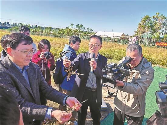 2024年11月29日,岭南复耕地种植大豆新品种新技术现场会暨南海区发展高水平农业校地合作对接会在南海里水召开。华南农业大学现场测量了佛山南海区南方大豆高产栽培技术示范基地大豆种子亩产。经测算,该基地大豆平均亩产达232.69公斤,较全国大豆平均亩产量高出近一倍。预计该地334.3亩土地能收获约8.58万公斤大豆种子,有效发展高水平农业新质生产力,助推“百千万工程”深入实施。