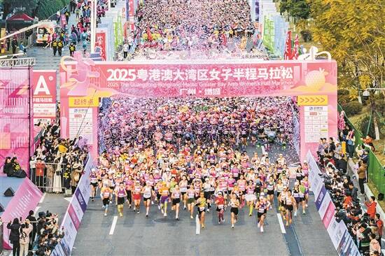 羊城晚报讯 记者马灿、通讯员增宣报道:当新年的第一缕阳光洒向大地,1月1日7时30分,全国规模最大的女子半程马拉松赛——2025粤港澳大湾区女子半程马拉松在广州增城开跑。2万名来自不同国家和地区的跑者尽情展现“悦己、跃跑、越美丽”的迷人风采,以奔跑的姿态迎接崭新的一年。