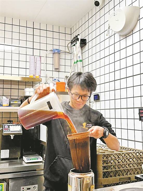 陈健辉今年29岁,自2017年开始工作起,一直在餐饮业打转,在厨房帮过厨、在吧台调过酒。2022年入职江门餐饮店“超级魔厨”、正式学习港式奶茶制作之前,他接触更多的是台式珍珠奶茶。“不同于台式奶茶加小料来丰富口感,港式奶茶用料很少。”陈健辉提到,“小时候都是在香港电影里看到港式奶茶,街坊们喝茶聊天,挺有烟火气的,但没特意去喝过,后来第一次喝到,那口茶真的又香又浓又滑。”