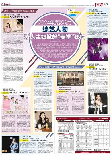 羊城晚报文娱体育部的编辑记者们,纵览全年综艺,共同选出了2024年最具影响力的7组综艺人物。这些人物或因触及公众情绪的敏感点而引发争议,或因自身过硬的业务能力而闪闪发光,或以身入局为观众提供“吃瓜”趣料……屏幕内外,是综艺,也是真实生活的一隅。再见2024,你好,2025!