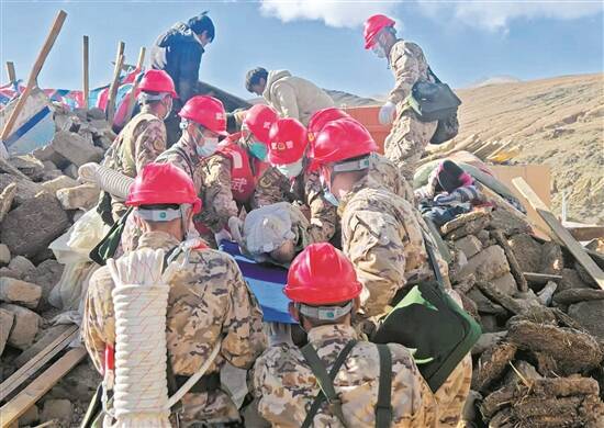 救援人员在定日县长所乡班久村进行搜救 新华社发
