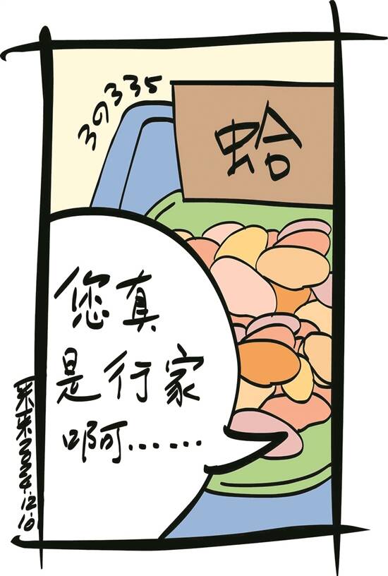这天,阿陆请同事小明吃饭,两人约好一起去菜市场。到了海鲜区,小明想吃花甲,看到水产摊上摆放着几种价钱的花甲,小明心想着替主人家省钱,便点了一种最便宜的。谁知阿陆立马制止道:“那是沙甲,比较多沙,所以才便宜点。就算是花甲也有两种,看颜色,得买花甲王,最好吃是这种。”
