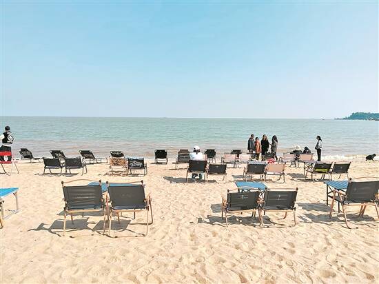 私人桌椅挤占沙滩向游客收费
