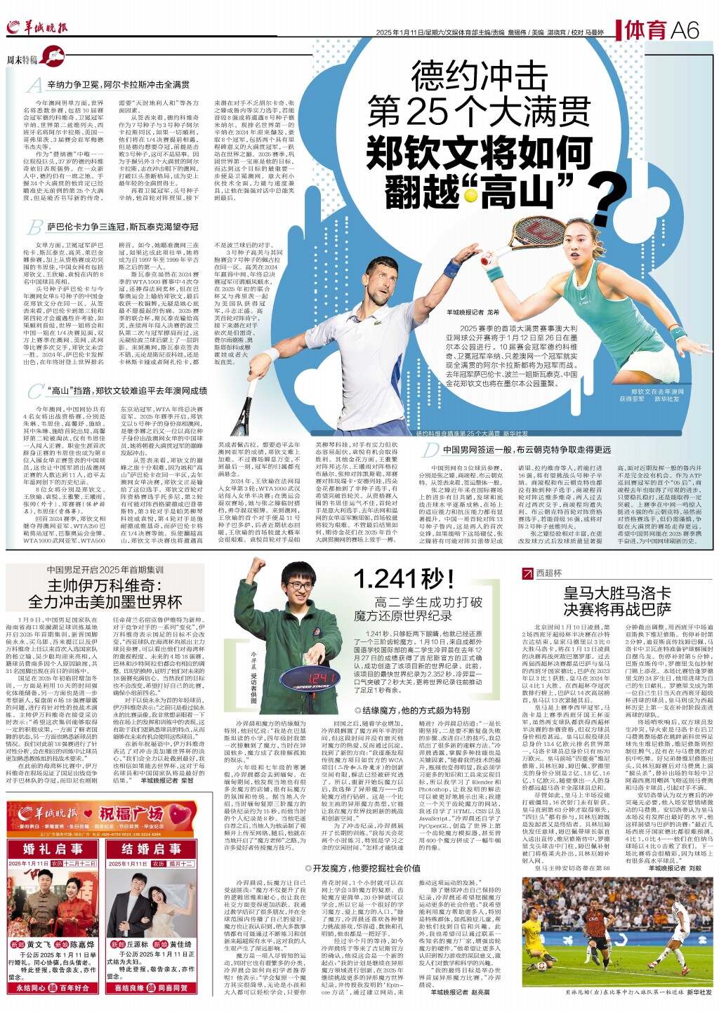 德约冲击第25个大满贯 郑钦文将如何翻越“高山”?