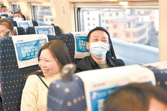 返乡途中笑声不断 羊城晚报记者 严锦程 摄