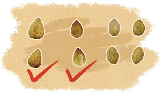 鉴别要点:北杏仁与桃仁的分辨常作为中药专业考试题!二者表面都是黄棕色,苦杏仁外形呈扁心形,一端尖,另一端钝圆肥厚。而桃仁则为扁长卵形或类卵圆形,中部膨大,尖与圆的两端对比没有杏仁那么明显。南杏仁通常比北杏仁大,基部两侧对称,而北杏仁基部不对称。