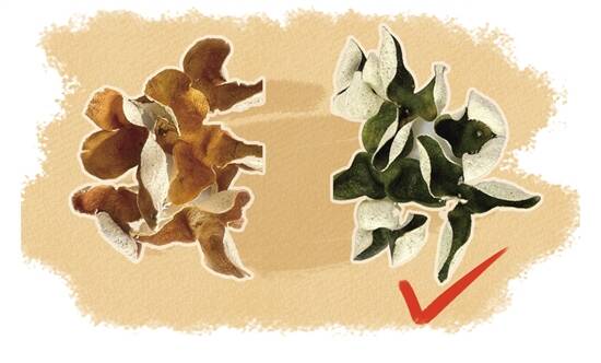 鉴别要点:对于普通市民来说,最简单直接是看颜色辨别。陈皮外表面为橙红色或红棕色,内表面则为浅黄白色;青皮表面灰绿色或黑绿色,切面为黄白色或淡黄棕色。