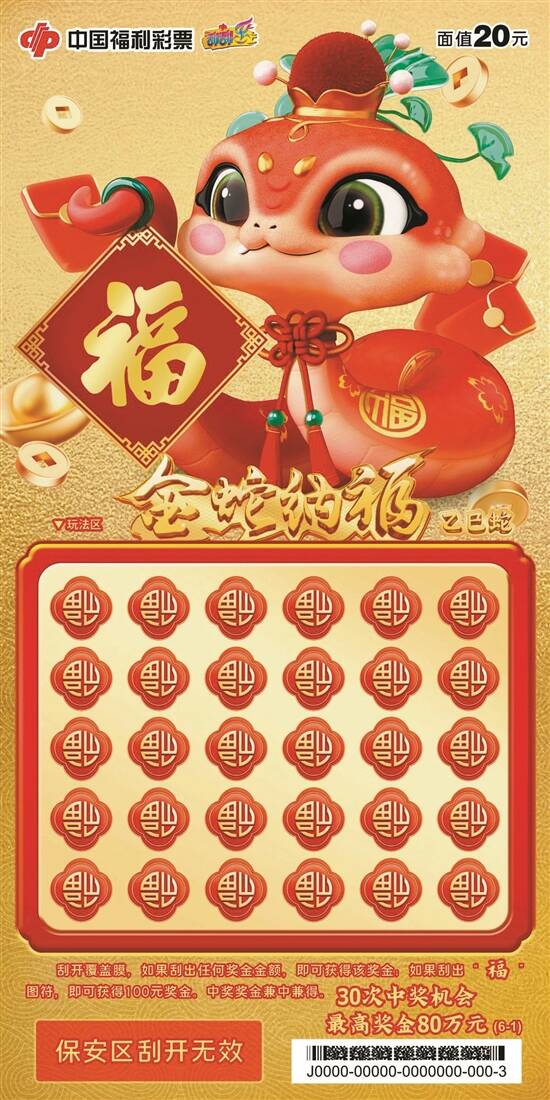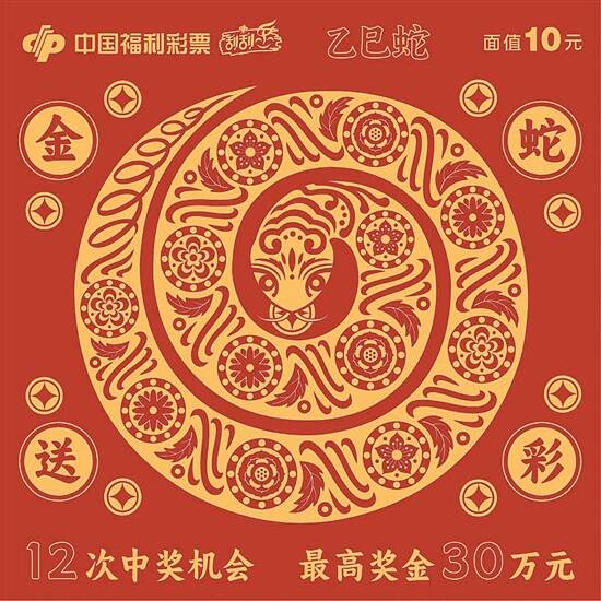 刮刮乐“乙巳蛇”生肖主题票,是传统文化的传承,是福彩文化的展现,是福彩恭贺新春、送福添彩的创新表达。