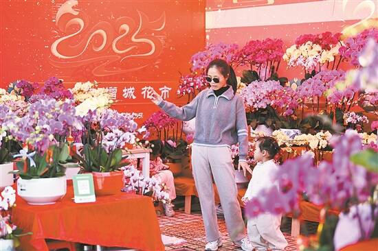 羊城晚报讯 记者马灿报道:1月19日9时,在广州增城广场蛇年迎春花市牌楼下,精彩的舞狮、热闹的巡游接连上演——2025年广州市增城区迎春花市节庆活动正式开锣。羊城晚报记者在现场看到,五彩斑斓的年宵花和各式各样的绿植品种琳琅满目,香气弥漫令人心旷神怡,吸引了市民驻足观赏、选购。