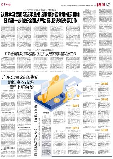 经济大省挑大梁,再造一个新广东。广东资本市场以“开年即冲刺”的姿态奋力抢开新局,1月21日出台的关于高质量发展资本市场28条具体措施,彰显广东资本市场发展十足底气——