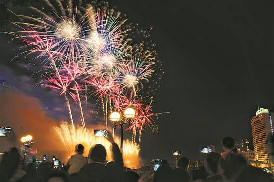 去年的烟花汇演为广州市民游客打造视觉听觉盛宴 羊城晚报记者 宋金峪 摄
