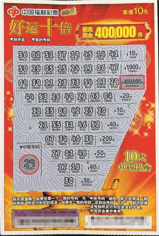 “好运十倍”中奖彩票