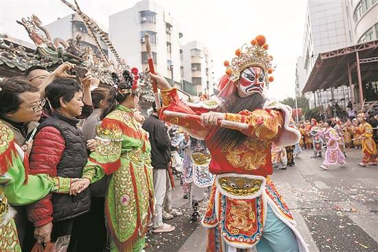 记者探班的这一天,正好是潮汕地区群众送“老爷朝天”的重要日子。在潮阳的地标——双忠行祠门口,数支英歌队轮番上阵,秀出看家本领。现场人山人海,锣鼓声、欢呼声、掌声此起彼伏。即将出海亮相的西门英歌队也在表演队列之中。