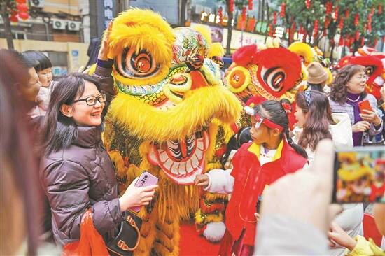街坊争着摸狮子头,图个好兆头 羊城晚报记者 邓鼎园 摄