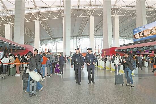 送别这群“在路上”的同行后,他们来到航站楼开始例行巡逻。