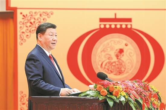 1月27日,中共中央、国务院在北京人民大会堂举行2025年春节团拜会。中共中央总书记、国家主席、中央军委主席习近平发表讲话 新华社记者 李学仁 摄