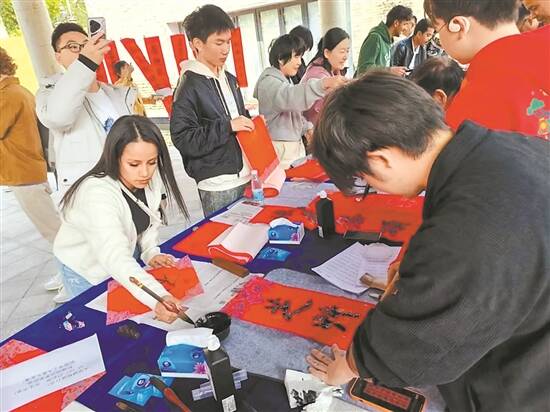 在华南理工大学各个校区,众多师生书法爱好者齐聚一堂,挥毫泼墨。“这样的活动形式既满含新春祝福,又传承传统文化。”华工学生吴睿祺表示。不少海外留学生也参与其中,尝试用汉字书写春联,表达对新春佳节的祝福。
