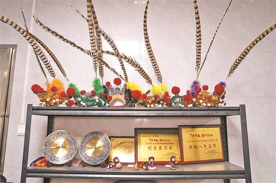 女子英歌队员佩戴的头饰与荣誉牌